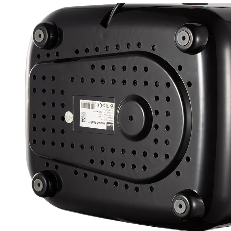 Designed for practicality and durability, the RAF R.208 features a non-stick bread pan for easy release and cleaning, a large glass viewing window to monitor progress, and a sturdy plastic and stainless steel body that fits well in modern kitchens.